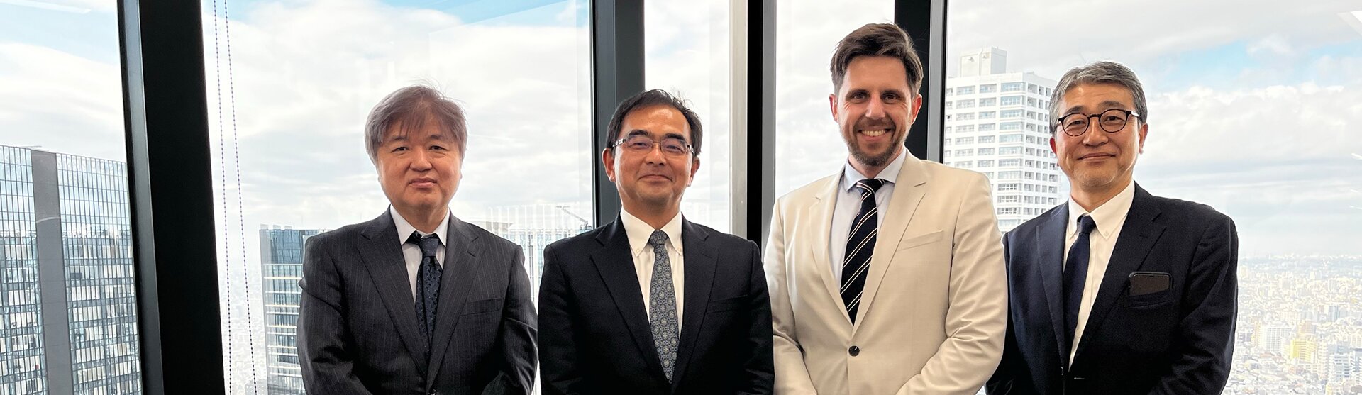 First picture below shows from left to right: Mr. Yoshihisa Saito (Assistant to the Executive General Manager); Mr. Hiroshi Ogawa (Executive Vice President and Director, Executive General Manager of Global Trading Division), both FP Corporation; Mr. Boris Pasternack (Head of Sales East Asia); Mr. Hosoya Hiroyuki (Senior Sales Representative), both Brückner Maschinenbau