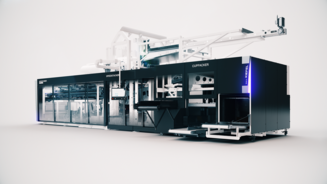 The new tilting machine SPEEDFORMER KTR 6.2 SPEED for the mass production of polymer cups and coffee capsules - this technology solution provides higher productivity and production versatility while offering 10% energy savings due to optimized heating.